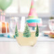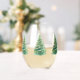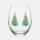 Elegant Watercolor Snowflake Merry Christmas tree Stemless Wine Glass