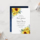 This beautiful sunflower wedding invitation design features hand-painted yellow watercolor sunflowers, greenery and a navy blue background. Easily change the font style, colours and back of invite colour.