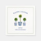 Elegant watercolor 3 topiaries in blue and white pot Easter napkins.