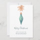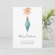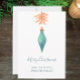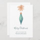 Personalise this card with your name and custom text for a unique original art Christmas holiday greeting card. I hand painted this simple teal or turquoise blue green Christmas bauble. The rustic golden brown botanical leaves suspend a vintage style holiday ornament on a white background. The minimalistic single ornament makes a stylish elegant impression. Modern script saying Merry Christmas and your family name are in white. The back side is blank for your use. All the text is editable. I hope you enjoy this one-of-a-kind lovingly made card.