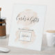 This design features a splash of elegant peach watercolor. This simple design takes advantage of the natural watercolor splash brush stroke in order to emphasize the text. The wedding date is framed in black and white. The combination of the peach colour together with the black and white colours creates a sophisticated, trendy and chic style. Elegant wedding cards and gifts sign design with modern elements. The modern setup of the typography gives it a distinct style. Matching wedding invitations and other stationery items are also available.