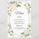 Elegant Watercolor White Flowers Gold Wedding Menu