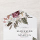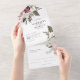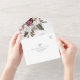 Unique all in one invitation features beautiful watercolor wildflowers in shades of burgundy, blush pink, cream, and white.