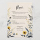 This Elegant Watercolor Wildflowers Beige Floral Wedding Menu features beautiful blue and yellow wildflowers, menu options, optional text on the back, and modern typography. Your wedding reception guests will love having a choice of meal options at your wedding.