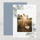 Elegant watercolor winter foliage, single photo holiday card. Card features, soft bouquets of leaves and branches in delicate shades of blue and green with trendy dusty blue colour backing. Personalise text, customise font style and colours.
