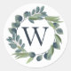 Elegant Watercolor Winter Foliage Wreath Monogram Classic Round Sticker