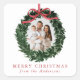 Elegant Watercolor Wreath with Bow Photo Holiday Square Sticker