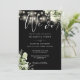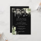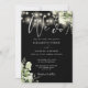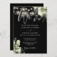 This elegant black and white botanical greenery floral string lights wedding invitation can be personalised with your information in chic typography with your wedding website details and your QR code on the reverse. Designed by Thisisnotme©