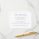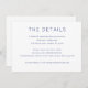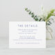 This is a minimalist style image with clean lines and a serene blue color palette, providing essential details for wedding accommodations. The text is neatly organized, offering information about room reservations at Seabreeze Harbor Inn, including the address, reservation deadline, booking code, and shuttle times. It exudes an air of sophistication and organization, making it perfect for guests to easily access important event-related information.
