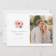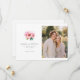 This is a minimalist style image featuring an elegant wedding announcement for Isabella & Patrick, set to take place on June 8, 2026, in Naples, Florida. The left side showcases delicate pink peonies and green leaves, adding a touch of natural beauty and romance. On the right, there's a warm photograph of the couple smiling joyfully together, capturing their happiness and connection. The soft colors and serene garden background create a peaceful and inviting mood, perfect for sharing this special moment with loved ones.