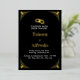 Elegant Wedding Black and Gold Foil Invitation. An ornate, gold frame and ornamentation decorate an elegant dark black background for a dramatic