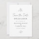 Elegant black and white save the date wedding design features modern calligraphy script and a beautiful classic serif font in sophisticated black on a crisp white background. Fresh traditional composition is embellished with decorative botanical leaves. Borderless design allows you to easily choose the paper shape and further customise your save the date announcement. E-mail invitationsuites@gmail.com with questions or custom colour requests.