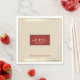 Your own initials and a small heart of love, monogrammed on a nice reddish standard-paper-napkin... with custom text 'thank you for celebrating with us'