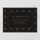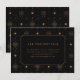 This is a sophisticated style image featuring an elegant wedding details card with a rich, dark background adorned with intricate golden patterns. The central text box, framed in gold, invites guests to explore more information on accommodations and additional details through the couple's wedding website. It exudes a sense of luxury and refinement, perfect for setting a tone of grandeur and anticipation for the big day.