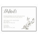 Elegant wedding details cards with grey flowers and custom grey text printed on white background