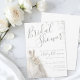 A simple and classic bridal shower invitation featuring a watercolor white wedding dress with peach roses or flowers, and greenery accents. A grey-ish sage green font colouring is currently there, but you can swap it out to peach, grey, or whatever you'd like. A mix of script typography and a simple modern font. Celebrate the bride to be with this soft palette. Elegant Floral Wedding Dress Bridal Shower Invitation.