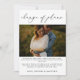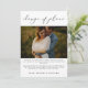 A perfect announcement card for when you've changed your wedding plans and decided to elope instead! The headline "change of plans" is in black modern calligraphy script font, with a photo underneath, together with your message and sign off.