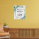Welcome guests to your wedding ceremony or reception with this poster print. The design features beautiful watercolor eucalyptus and white floral greenery accented with a faux gold glitter oval frame. All text, font styles and colours can be changed to customise and coordinate with your wedding. OPTIONS: The sample is shown in a 20x24" size on Value Paper (Matte); other standard and custom print sizes, paper quality and framing, DIGITAL DOWNLOAD or transferring the design to a foam board, banner, tapestry or other product options are available on the ordering page. TIP ON RESIZING: Choose Custom Size for even borders by changing the height and width proportionately AFTER clicking the UNLOCK icon. ASSISTANCE: For help with design modification or personalisation, colour change, resizing or transferring the design to another product, contact the designer BEFORE ORDERING via the Zazzle Chat MESSAGE tab below or email makeitaboutyoustore@gmail.com.