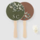 Elegant Wedding Hand fans with muted green sophisticated foliage detail and monogram template for your to personalise. Wedding reception décor from Ricaso