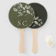 Elegant Wedding Hand fans with muted green sophisticated foliage detail and monogram template for your to personalise. Wedding reception décor from Ricaso