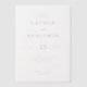 This is a minimalist style image featuring an elegant wedding invitation for Lauren and Benjamin. The design is clean and sophisticated, with a soft blue colour palette on a white background. The text is neatly arranged in a mix of serif and sans-serif fonts, creating a modern yet timeless feel. It conveys the joyous occasion of their union, inviting guests to celebrate at Willowbrook Estate in Atlanta, Georgia, followed by dinner and dancing. Perfect for those who appreciate understated elegance.