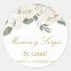 Elegant Floral Wedding round sticker in spanish, etiqueta elegante para boda en español.