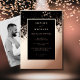 Celebrate love in its most luminous form with this minimalist rose gold wedding invitation editable template, where elegance meets understatement. Featuring radiant rose gold foil on a dramatic black backdrop, the design evokes quiet luxury and timeless grace. The front showcases refined typography and a clean layout—perfect for modern couples who favour simplicity with impact. On the reverse, additional information can be added as well as a full-size photo adds a personal touch, turning the invitation into a keepsake. Ideal for romantic weddings, black-tie affairs, or any celebration where love deserves to shine.