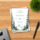 This is a minimalist style image featuring an elegant wedding invitation set against a serene nature backdrop. The design showcases tall, lush trees and distant mountains in soft green tones, creating a peaceful and inviting atmosphere. The text is clean and sophisticated, highlighting the names of the couple, Lauren and Benjamin, along with the date and location details for their special day. It feels like stepping into a tranquil forest retreat—perfect for couples who love nature and simplicity.