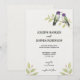 Wedding invitation with two birds perched on a branch, lush leaves, and names “Joseph Hanger” and “Sophia Robinson” in elegant font. Warm, inviting tone.