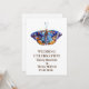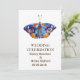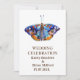 Elegant wedding invitations with blue watercolor butterfly art .