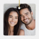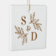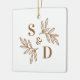 Elegant wedding monogram ornament featuring the couples monogram initials and greenery leaves with a custom photo on the back.