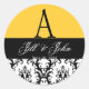Elegant Wedding Monogram Names Date Damask Yellow Classic Round Sticker