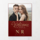 With its rich dark red hue and shimmering gold accents, this tri-fold program exudes opulence and luxury, setting the stage for a truly unforgettable event. The inclusion of your personalised wedding monogram adds a bespoke touch that reflects your unique love story.