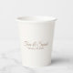 Include elegant wedding paper cups for your wedding celebration. Great for couples looking for elegant wedding party supplies. The front and back displays the name of the couple and wedding date. Use the template to customise the text. Create your own wedding paper cups.