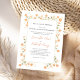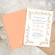 This design features a wedding invitation template with an elegant, classic, classy modern minimal style, with a simple elegant calligraphy script, and a peach floral boho greenery style, with traditional wording,