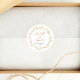 Add a refined touch to your celebration with these wedding favour labels, designed to be elegant and simple with a focus on modern typography. Featuring a soft peach colour palette and a delicate floral wreath in a botanical style, these labels include the bride and groom’s names for a personalised finish. Perfect for trendy reception decor, they bring a classic charm to your favours, treats, or packaging with effortless style.