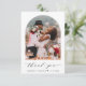 Modern wedding thank you card featuring your photo in an arch picture frame, "thank you" in an elegant calligraphy script and your names and wedding date in simple typography. On the reverse, add an additional photo, personalize your thank you message and add your names in a signature-like script.