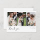 Modern multi wedding photo Thank You card for your guests who showed up to support and celebrate your big day with you. Easily add your favourite photos, names of bride and groom, date and a custom message and signature on the reverse side.