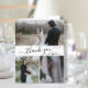 Elegant, Stylish Minimalist Hand Lettered Wedding Photo Collage Thank You Folded Card. This card template featuring three (3) photo on the front and one (1) photo inside. With the text "thank you" in a pretty hand lettered typography script font script font with swashes in black on white background. Personalise the custom name and thank you message. If you prefer to handwrite your note, just delete the sample text to make more space. If You need help or matching item, please message the designer!