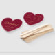 A simple but elegant heart shaped wedding program fan for a burgundy and gold wedding theme. The titles and the names (and the initials) of the bride and groom are written in an elegant calligraphic script, the rest in caps. The background is burgundy red, the text is golden yellow. On the back, it has on the left side the wedding ceremony program and, on the right side, the wedding party (with 2 different columns for the bride team and groom team). and under them a short Thank you message.