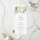 Elegant Wedding Programs with White Watercolor Flowers and Greenery: This wedding program features a beautiful white floral and greenery / foliage watercolor bouquet at the top. The back has room for your wedding party along with a thank you or in memory message at the bottom.