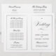 This program is an 8.5 x 11 page that requires you to fold it to assemble. The line border fades at the corner and this is intentional to match the script style. Classic understated black and white wedding program with a modern touch featuring the elegant script of the word "Wedding" on the outside "cover".