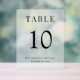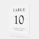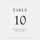 Frosted acrylic wedding reception table number sign featuring "Table" and the table number in elegant serif typography, and your names and reception date in modern typography. Create each table number and add to your shopping cart one at a time, then check out once all numbers are in your cart.