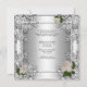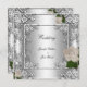 Elegant Wedding Rose Silver Invitation heart doves cream, Bow White Roses