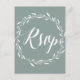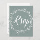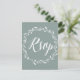 Elegant sage wedding RSVP postcards with floral wreath and changeable text