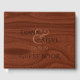 Create your own monogrammed faux mahogany wood wedding guest book that will become a treasured memento- Popular wedding style with rich mahogany woodgrain pattern on the front, back and spine. Bride and groom names monogrammed in elegant black lettering with a jumbo ampersand sign. Wedding date underneath. Reads Guest Book in matching black, capital letters at bottom. Elegant, modern wedding guest book for country western weddings, rustic wood wedding themes, and popular barn weddings. Note: Not actual wood. All images are printed. Click Customise option to change text colours, size, and font styles or placement. Easy to customise for other special occasions or events like bachelorette parties, baby showers, country wedding showers, masculine birthdays, graduation party for males, etc. Visit my Zazzle.com/angela65 shop for matching western wood wedding decor and unique, monogrammed wedding guest books.