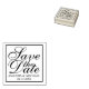 featuring phrase "Save the Date" in elegant calligraphy font style with name and date in classic serif font style with square border.