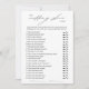 Beautiful design. Fun game for a Bridal Shower. Imagine my surprise when there was no “cheat” sheet. I contacted Zazzle for help but their ideas were to contact the developer. Haha there is no contact button. I ended up Googling the game and coming up with my own solution. Cute game but maybe downloading it via Etsy would have been a better idea. .