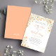 This design features an elegant wedding invitation, a classic, peach, floral design, simple typography, a classy modern minimal, a traditional, simple elegant calligraphy script, with a boho style.