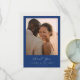 This is a romantic style image featuring a beautifully captured moment of two individuals sharing an intimate embrace, bathed in the warm glow of golden hour light. The composition highlights their joy and connection, with soft focus enhancing the dreamy atmosphere. Set against a deep blue background, the elegant script adds a touch of sophistication to this heartfelt thank you card for Lauren & Benjamin from Atlanta, Georgia. It's perfect for expressing gratitude while celebrating love and unity.